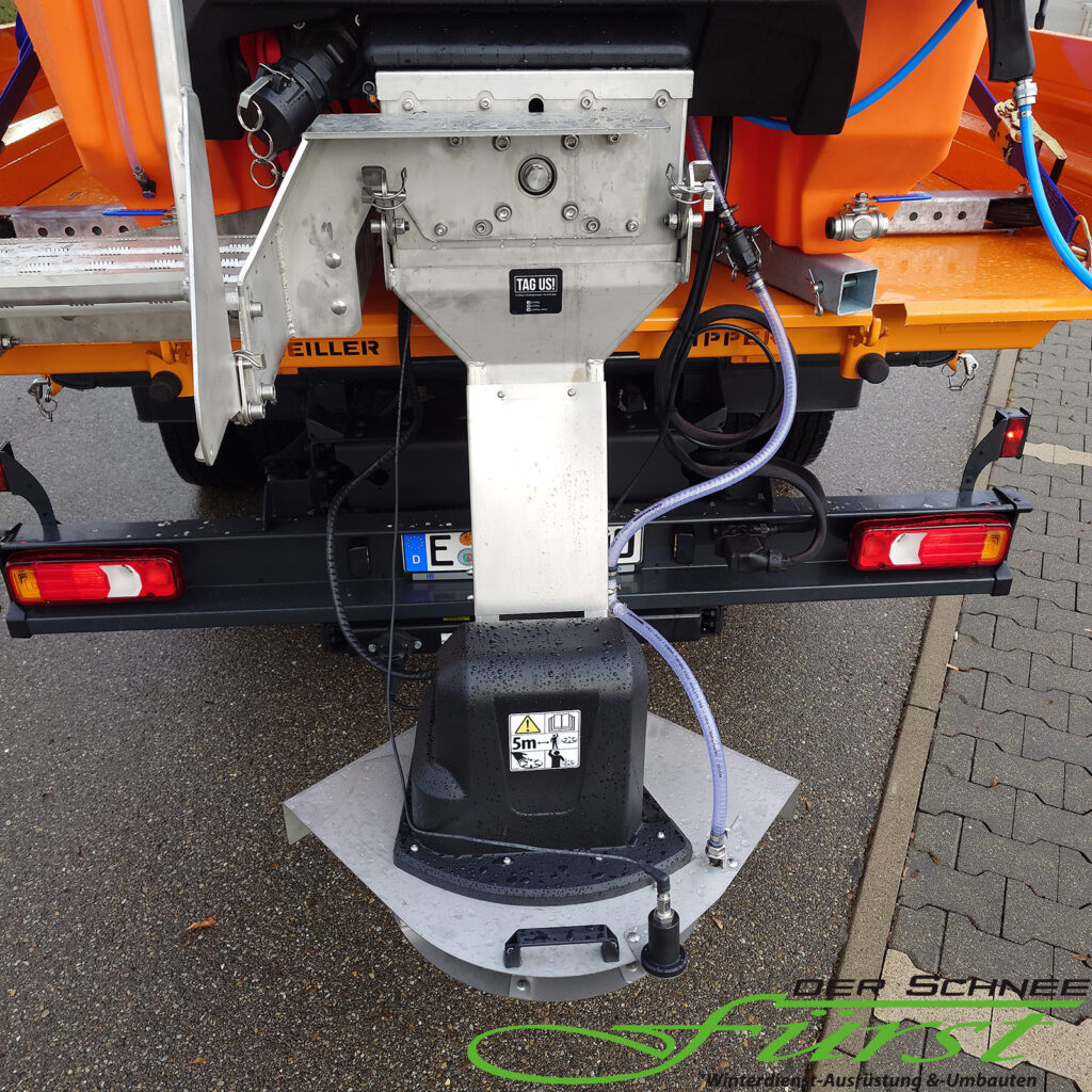 Als Streuer-Marke empfehle ich dabei HILLTIP, da es hier die umfassende Auswahl aus Streuergrößen gibt, um die Nutzlast optimal zu nutzen, je nach dem ob Sie mit oder ohne Vorbefeuchtung oder sogar mit reiner Sole arbeiten möchten. Ebenso sind zahlreiche Optionen verfügbar, vom Abstellsystem für ein schnelles Auf- & Abrüsten, Tablet-Steuerung (=StrikeSmart+) mit optionaler Bodentemperaturmessung mit Berücksichtigung der lokalen Wetterdaten und daraus resultierend eine voll-automatische Dosierung (=Tempstriker), elektrischer Streusymmetrieverstellung, Dump-Switch, Handsprühsystem, Material-Ende-Sensor…und und und!